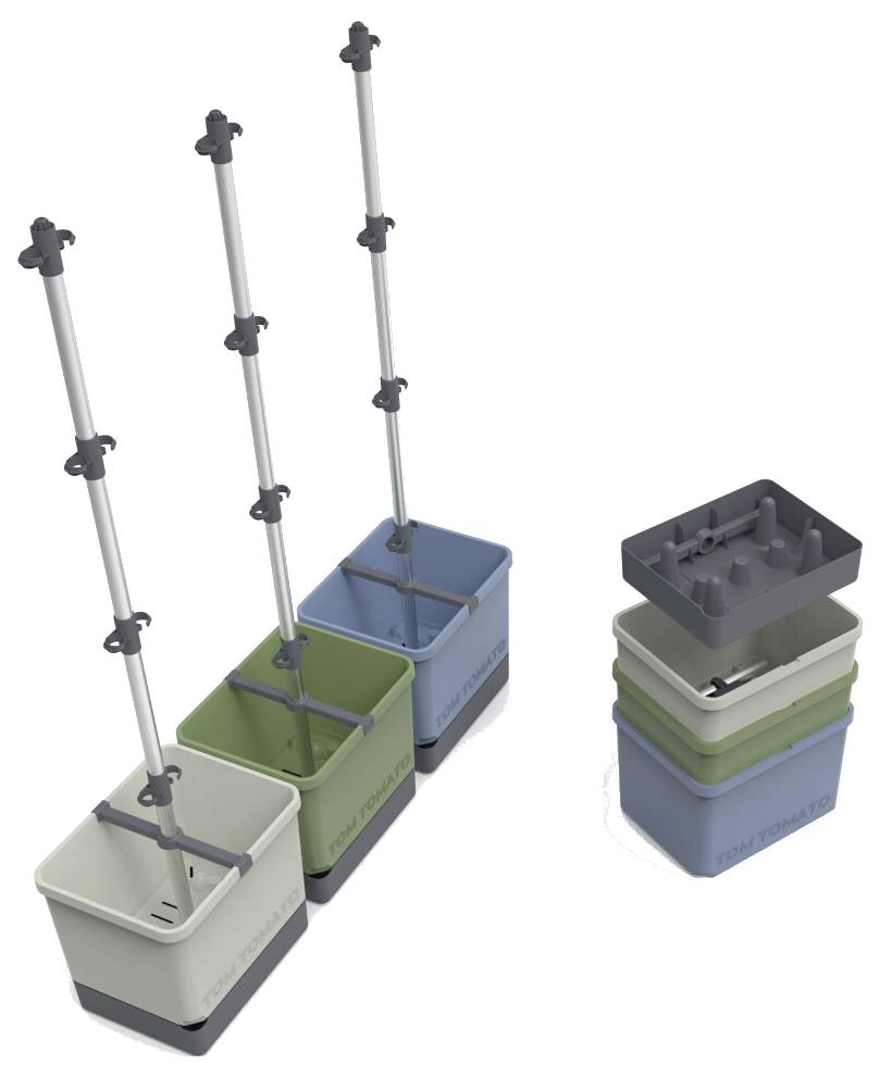 Inovativna posuda za rajčice TOM TOMATO je sveobuhvatan paket za bezbrižnu sadnju rajčica. Integrirani sustav za navodnjavanje i čvrsta rešetka s kukama za pričvršćivanje biljke pružaju rajčicama sve što im je potrebno za rast. Zbog optimalne veličine spremnika za vodu TOM TOMATO, potrebno ga je nadopunjavati vodom samo svakih nekoliko dana. Čvrsta rešetka izrađena od visokokvalitetnog aluminija. Biljke su pričvršćene kukama na rešetki. Visoka stabilnost sustava sadnje. Jednostavno punjenje spremnika za vodu kroz bočni otvor. Stener voda zahvaljujući velikom volumenu spremnika za vodu.